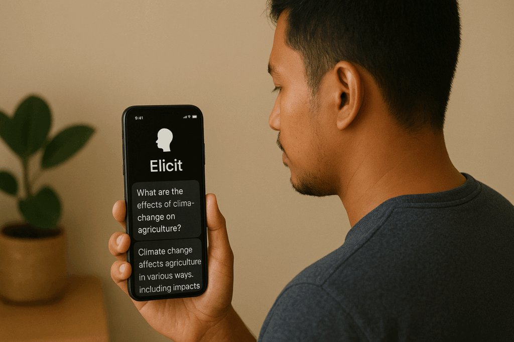 Elicit AI adalah asisten riset modern yang membantu kamu menemukan dan memahami literatur akademik dengan mudah. Dengan fitur pencarian pintar, ringkasan otomatis, serta filter fleksibel, Elicit dapat memangkas waktu riset sekaligus meningkatkan kualitas referensi.